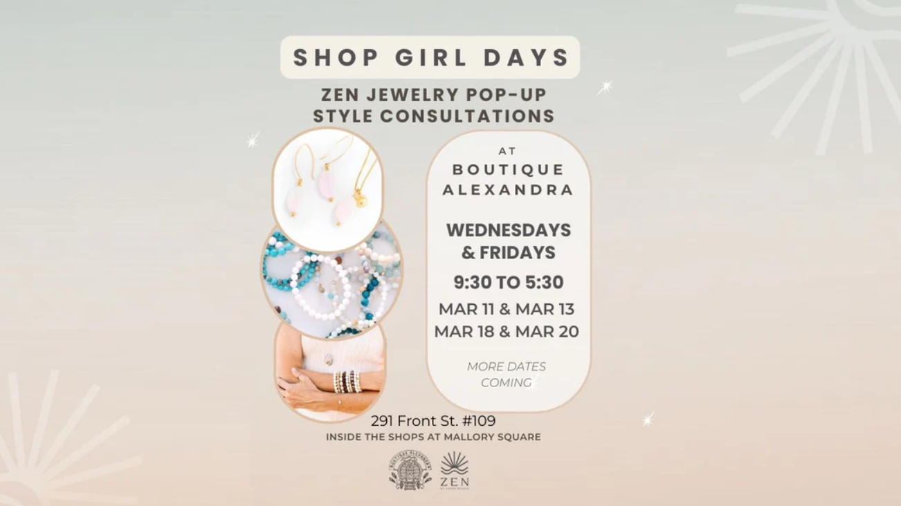 Shop local and elevate your style at Shop Girl Fridays, a recurring jewelry pop-up and styling experience with ZEN by Karen Moore at Boutique Alexandra in Key West. On Friday, March 20 from 9:30 a.m. to 5:30 p.m., Karen will be in-store offering personalized style consultations, showcasing her latest handcrafted jewelry collections, and sharing the inspiration behind each piece. Visit Boutique Alexandra, 291 Front Street #109, to browse, connect, and create your own unique look in a relaxed, interactive setting—with additional dates to be announced.